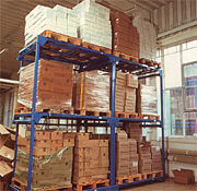 Paletizované zboží společně s buňkou se zaváží postupně do řad na sraz. Tímto způsobem lze obsadit celou podlahovou plochu. Při expedici se postupuje opačně.
