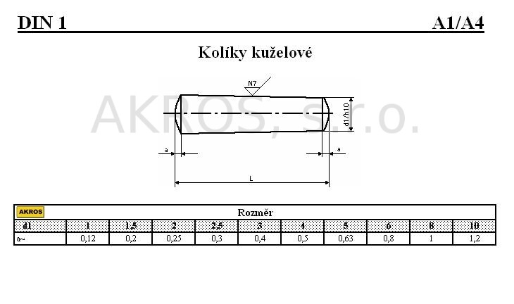 KOLÍKY KUŽELOVÉ DIN 1/A4