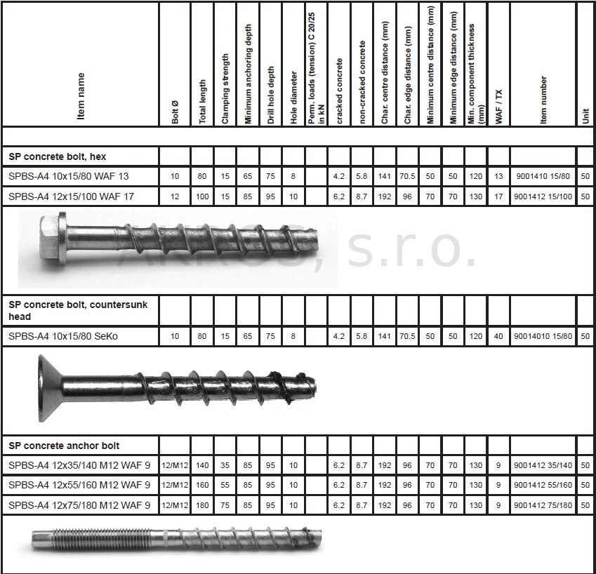 KOTEVNÍ ŠROUBY DO BETONU AN 9003/A4