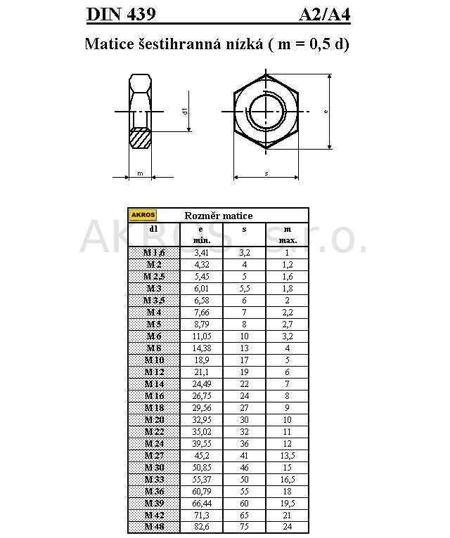 MATICE ŠESTIHRANNÉ NÍZKÉ (tvar B) S JEMNÝM ZÁV.M DIN 439B/A4