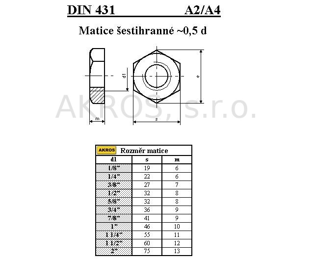 MATICE ŠESTIHRANNÉ S TRUBKOVÝM ZÁV.(tvar B) DIN 431B/A2