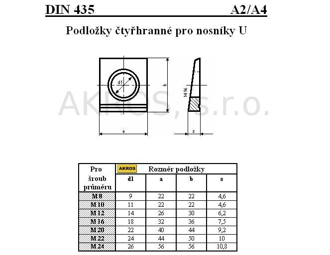 PODLOŽKY ČTYŘHRANNÉ PRO I NOSNÍKY (sklon 14 %) DIN 435/A4