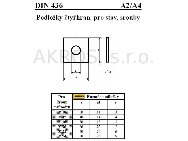 PODLOŽKY ČTYŘHRANNÉ PRO STAVEBNÍ ŠROUBY DIN 436/A4