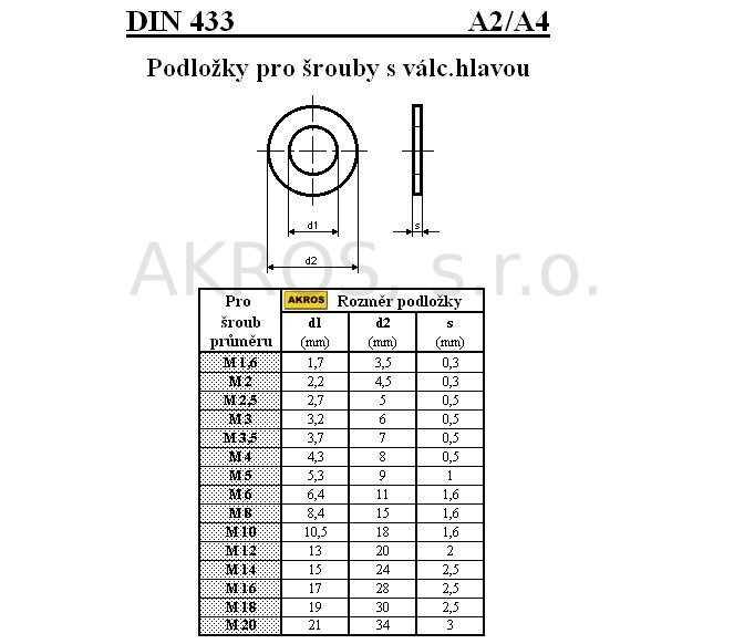 podložka 17 ,(pro DIN 84), DIN 433/A4
