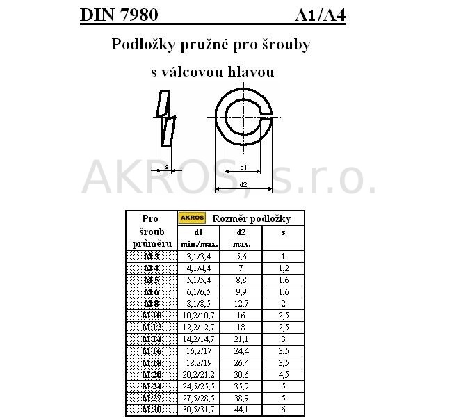 PODLOŽKY PRUŽNÉ PRO ŠROUBY S VÁLCOVOU HLAVOU DIN 7980/A1