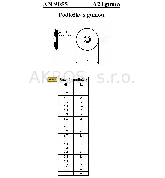 PODLOŽKY S GUMOU (EPDM) AN 9055/A2
