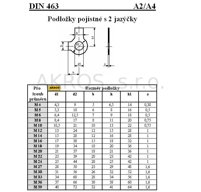 pojistný plech 5.3,(2 nosy), DIN 463/A2