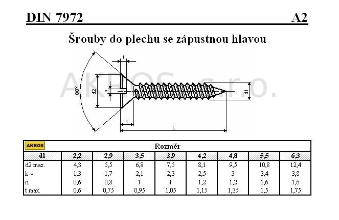 ŠROUBY DO PLECHU SE ZÁPUSTNOU HLAVOU S DRÁŽKOU DIN 7972/A2