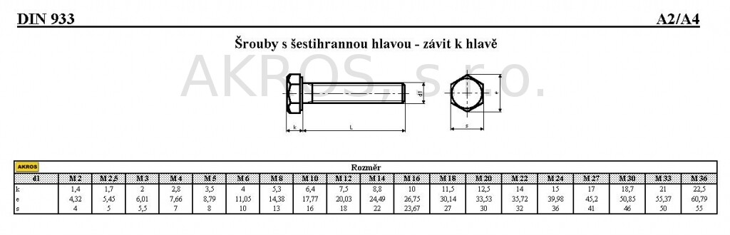 - ŠROUBY S ŠESTIHRANNOU HLAVOU DIN 933/A4