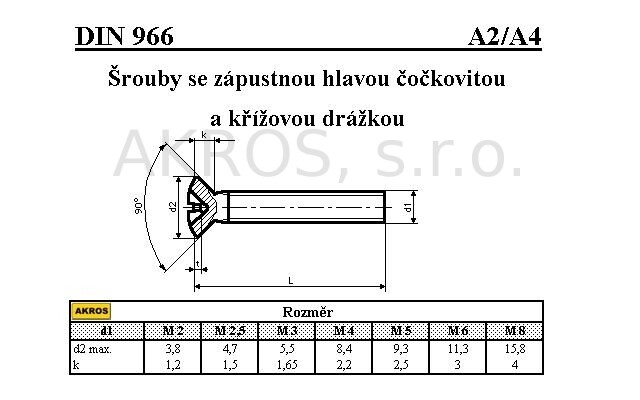 ŠROUBY SE ZÁPUSTNOU ČOCKOVOU HLAVOU S KŘÍŽOVOU DRÁŽKOU DIN 966/A4