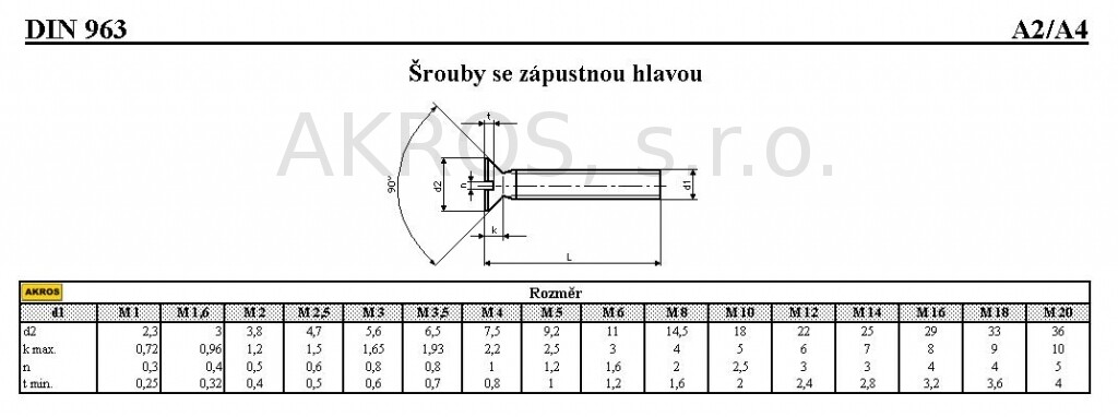 ŠROUBY SE ZÁPUSTNOU HLAVOU S DRÁŽKOU DIN 963/A4