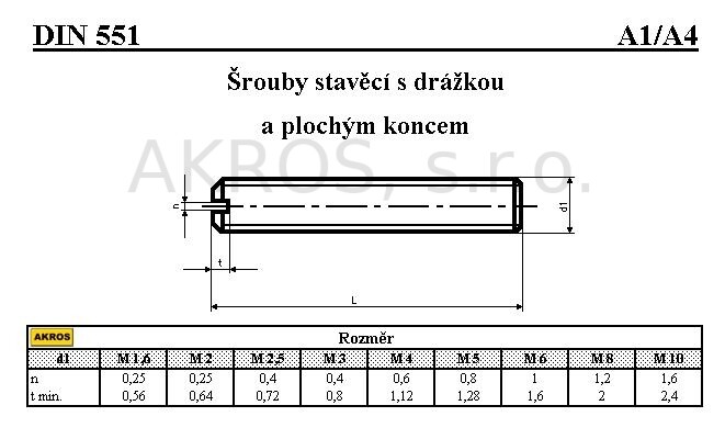 ŠROUBY STAVĚCÍ S DRÁŽKOU A PLOCHÝM KONCEM DIN 551A4