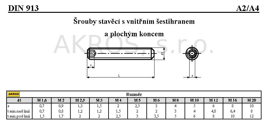 ŠROUBY STAVĚCÍ S VNITŘNÍM ŠESTIHRANEM A PLOCHÝM KONCEM ISO 4026/A2