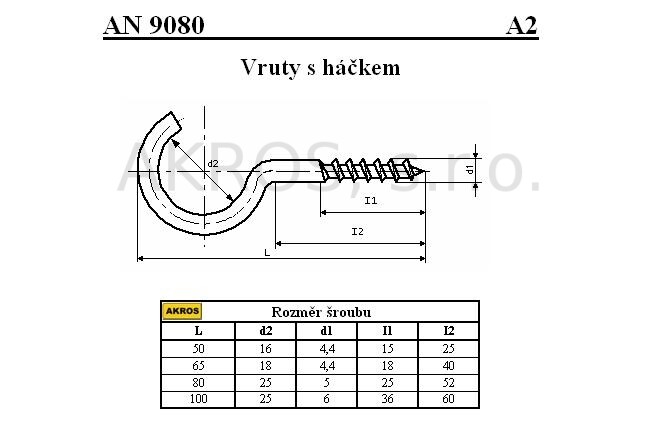 vrut s háčkem 5.0x 80/52, AN 9080/A2