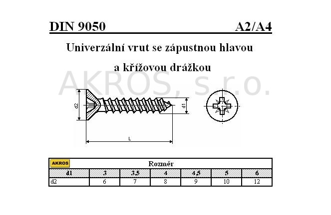 VRUTY UNIVERZÁLNÍ SE ZÁPUSTNOU HLAVOU S KŘÍŽOVOU DRÁŽKOU AN 9050/A4